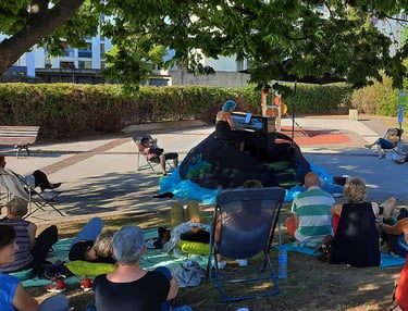 Le piano vagabond apporte aux collectivités locales, associations ou particuliers l'occasion d'offrir à leurs habitants, leurs membres, leurs familles et amis, un moment unique de convivialité, un concert de plein air mêlant plaisir musical et poésie de l'instant, dans la simplicité et la bonne humeur, le tout en découvrant plein de choses sur le piano et son répertoire !